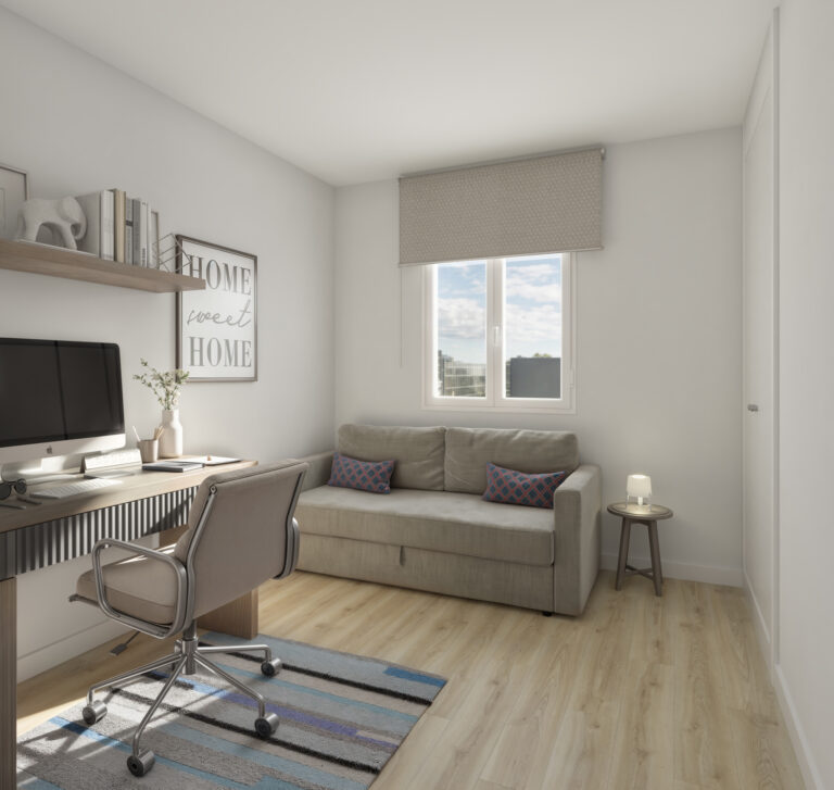 Las imágenes e infografías de la promoción son ilustrativas (por ejemplo, algunas de las imágenes pueden contener futuras opciones con coste adicional, como el paneleado en las cocinas). Las citadas imágenes e infografías, así como los planos están basadas en un proyecto inicial, pudiendo sufrir modificaciones por motivos técnicos o jurídicos y a criterio de la dirección facultativa. El mobiliario, electrodomésticos y decoración de las imágenes, infografías y planos no están incluidos en el producto, salvo aquellos elementos expresamente recogidos en la memoria de calidades.